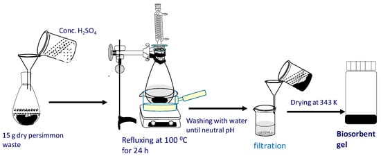 Both biosorbents were prepared simply by crosslinking the polyphenol functional components with other major components, such as cellulose, by refluxing the residues in concentrated sulfuric acid at 100 °C as shown in Scheme 12. The biosorbents are abbreviated as crosslinked persimmon gel and crosslinked grape gel, hereafter.