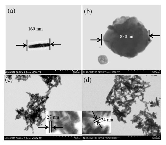 - Choi, K.I.; Lee, S.H.; Park, J.Y.; Choi, D.Y.; Hwang, C.H.; Lee, I.H.; Chang, M.H. Fabrication and characterization of hollow TiO2 fibers by microemulsion electrospinning for photocatalytic reactions. Mater. Lett. 2013, 112, 113–116. [Google Scholar] [CrossRef]