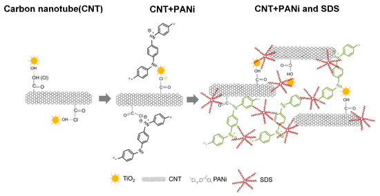 - Reddy, K.R.; Sin, B.C.; Ryu, K.S.; Kim, J.C.; Chung, H.; Lee, Y. Conducting polymer functionalized multi-walled carbon nanotubes with noble metal nanoparticles: Synthesis, morphological characteristics and electrical properties. Synth. Met. 2009, 159, 595–603. [Google Scholar] [CrossRef]