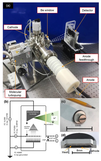 - Basu, A.; Swanwick, M.E.; Fomani, A.A.; Fernando, L. A portable X-ray source with a nanostructured Pt-coated silicon field emission cathode for absorption imaging of low-Z materials. J. Phys. D Appl. Phys. 2015, 48, 1–11. [Google Scholar] [CrossRef]