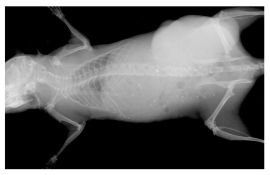 X-ray image of an alive rat taken at 55 kV/0.3 mA.
