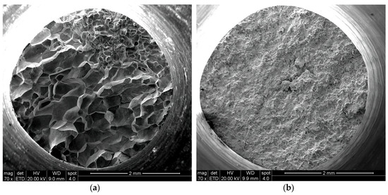 Fracture surface of: (a) gravity casting; (b) suction-assisted casting.