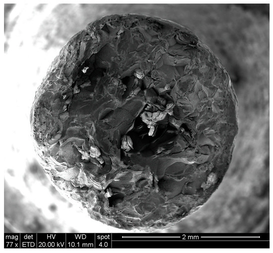 A general view of the fracture surface of a specimen that crept at 982 °C under 120 MPa.