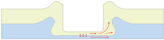 As shown in Figure 9, the material flow to increase the interlock and neck thickness is indicated by the red narrow. In the clinching process, the sheets were compressed by the upper punch. The bottom thickness was reduced with the movement of the punch, then the material of the bottom part was compressed to flow radially. With the blank holder to fix the sheets, the material flowing radially could be gathered in the interlock area. With the increase of the forming force, more and more materials would flow radially to reinforce the mechanical interlock. Thus, the interlock was increased with the forming force. In addition, with the blank holder to fix the sheets, radial flow of the material was also prevented. Then the material flowed opposite to the movement of the punch and moved into the space between the blank holder and punch, which increased the neck thickness.