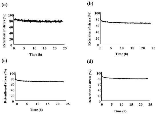 Rate of retention stress (a) rate of retention stress of 16 PEEK (Polyetheretherketone); (b) rate of retention stress of 16-22PEEK; (c) rate of retention stress of 19-25PEEK; (d) rate of retention stress of Ni-Ti.