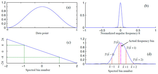 By setting parameter in Equation (20) at 0.5, we can obtain a Hanning window. The modulus function of a Hanning window whose function vertex value is 1 (Figure 3a) can be deduced as