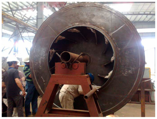 Compared with other rotary components (bearings, gears, and motors), in situ dynamic analysis of bladed machinery is more difficult. Among the various failure types of bladed machinery, a significant problem that has not been properly addressed is the detection of crack growth. Doing work to the input BFG via impeller blades, the bladed machinery can generate high-pressure output gases. Because the working impeller blades must be exposed to extreme environments of high temperatures and corrosive BFG at high speeds, cracks are inevitable after long service. However, it is extremely difficult to detect incipient cracks using online condition monitoring techniques, especially at early stages of crack development. Typically, a fatigue crack becomes conspicuous only after the crack reaches about 80% of the total fatigue life of a structure [21]. This problem has attracted research interest from the scientists and engineers. At present, there are various non-destructive evaluation and structural health monitoring techniques that are available to detect the occurrence of cracks in laboratory environments. These techniques incorporate = ultrasonic, acoustic emission, thermal imaging, eddy current, magnetic particle inspection, X-ray, etc. measurements [22,23,24,25]. Among the various alternatives, a traditional contact measurement method is to mount strain gauges on the blade surface and record the testing signals using a data acquisition system [26,27,28]. Despite its effectiveness, this method is not developed such that it can overcome the hurdles to satisfy the needs of online testing. On the other hand, in state-of-the-art research, a considerable amount of attention has been paid to the analysis and identification of dynamic/modal parameters such as natural frequencies, mode shapes, and modal damping ratio from vibration signals of blade machinery for the purpose of crack detection.