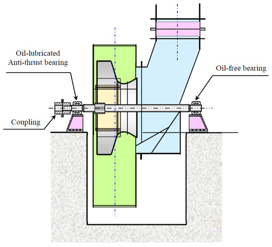 Mechanical transmission chain of the booster fan (from the driving AC motor to the centrifugal compressor).