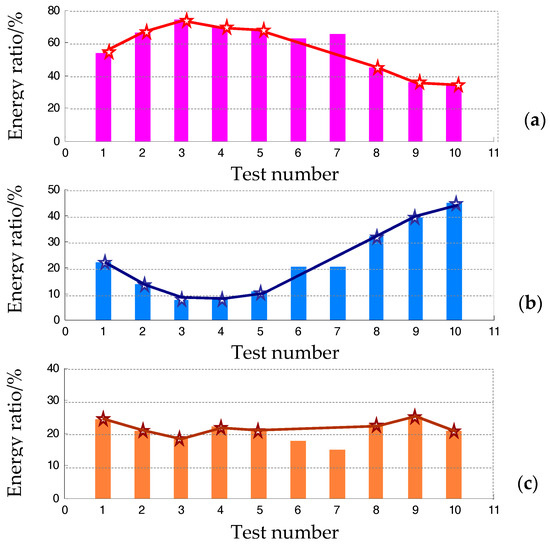 Energy weight of the three harmonic tones of the fundamental working frequency: (a) the first order, (b) the second order, and (c) the third order.