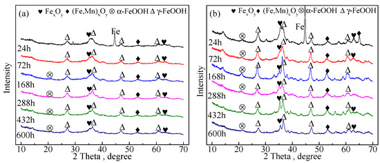 - Singh, A.K.; Ericsson, T.; Häggström, L.; Gullman, J. Mössbauer and X-ray diffraction phase analysis of rusts from atmospheric test sites with different environments in Sweden. Corros. Sci. 1985, 25, 931–945. [Google Scholar] [CrossRef]