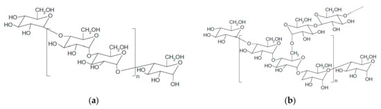 - Daniel, J.; Whistler, R.L.; Voragen, A.C.J.; Pilnik, W. Ullmann’s Encyclopedia of Industrial Chemistry, Starch and Other Polysaccharides, 5th ed.; Elvers, B., Hawkins, S., Russey, W., Eds.; VCH Verlagsgesellschaft GmbH: Weinheim, Germany, 1994; Volume A25, pp. 1–62. [Google Scholar]