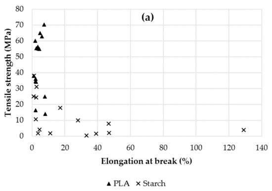 - Huneault, M.A.; Li, H. Morphology and properties of compatibilized polylactide/thermoplastic starch blends. Polymer 2007, 48, 270–280. [Google Scholar] [CrossRef]