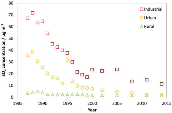 2 concentration has not changed much since 1987. Some decreases in concentrations were measured until approximately 2000, with little change thereafter, except some possible increase at the industrial sites. In contradiction to the situation for SO