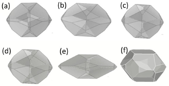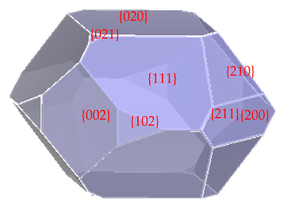 - Hartman, P. The Attachment energy as a habit controlling factor III. application to corundum P. hartman. J. Cryst. Growth 1980, 49, 166–170. [Google Scholar] [CrossRef]