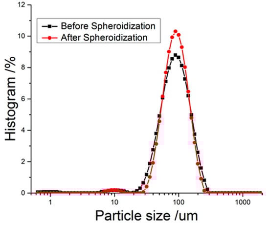 The size distribution of RDX before and after spheroidization.