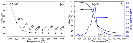 Thermal analysis of KL (a) KL-X yield at different temperatures; (b) TG and DTG curves.
