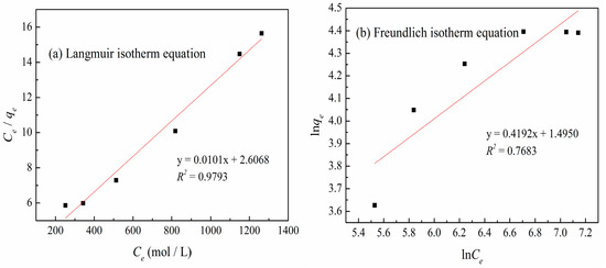 | qm (mg/g) | Langmuir Isotherm Equation | Freundlich Isotherm Equation | |||||||