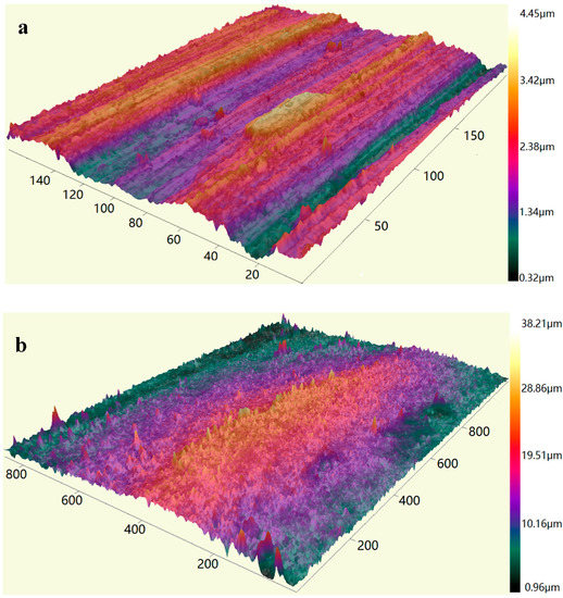 After obtaining the attack angle ( = 1, 2, …, m) of all contact patches in the representative area, the frictional coefficient generated by this area can be calculated by combining ( = 1, 2, …, m). The geometry of contact patches is determined by normal pressure, when the nominal normal pressure is not so high, the number of contact patches is huge, making it difficult for us to measure and calculate the attack angles of every contact patch. Considering that the arithmetic average attack angle of contact patches is independent of the nominal pressure except at very high pressure where all the contact patches eventually join together [31], the more meaningful measurement is arithmetic average attack angle of contact patches. The arithmetic average attack angle of contact patches under lower normal pressure can be obtained by measuring the arithmetic average attack angle of under relatively high normal pressure. The arithmetic average attack angle and frictional coefficient can be calculated by the following formula: