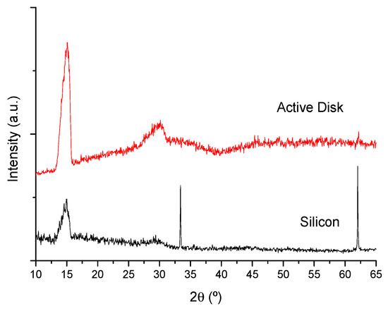 Figure 11 shows the XRD patterns of a ~36 μm active disk, deposited on silicon, where there is no evidence of any residual crystalline material.