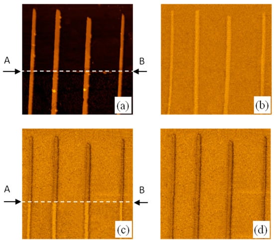 We applied these effects in order to control the domain structure in planar Co/Pt nanowires (NWs). The NWs were fabricated by e-beam lithography and Ar+ ion etching [16]. The lateral sizes of the NWs were 100 nm × 3000 nm. The atomic force microscopy (AFM) image of the NW array is presented in Figure 5a.