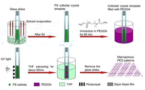 Schematic illustration of the fabrication process of PEG inverse opal micropatterns.