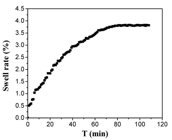 Swell curve of 330 nm PEG hydrogel inverse opal micropatterns in 30% humidity.