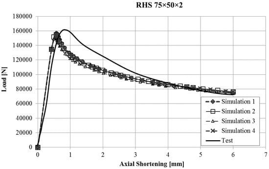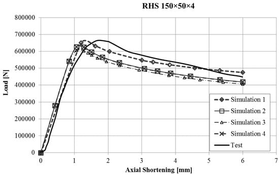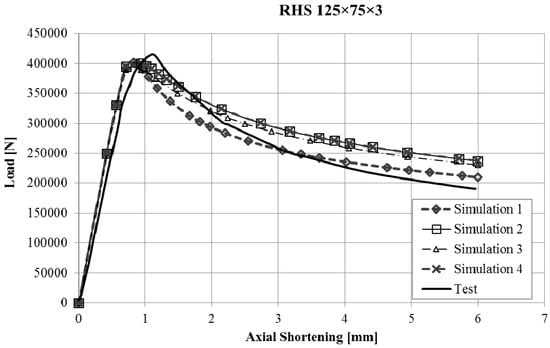 All the simulations were displacement-controlled by forcing the displacement of one of the ends of the stub columns and fixing the other end [15]. The applied load is obtained from the reactions in the supports.