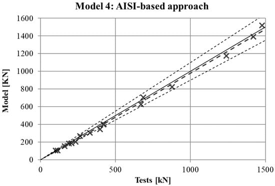 Two conclusions can be obtained from the Figure 3, Figure 4, Figure 5, Figure 6, Figure 7, Figure 8, Figure 9 and Figure 10. First, the graphs show that the four proposed models applied to the previously presented FE simulation give slightly conservative results. Second, it is clear that the worst model for the material properties is the one that does not take into account the material properties of the corners and only accounts for the properties of the flat faces for the whole section (Figure 9). However, there are no clear differences among the other three figures (Figure 7, Figure 8, and Figure 10) so there is no clear preference among them.