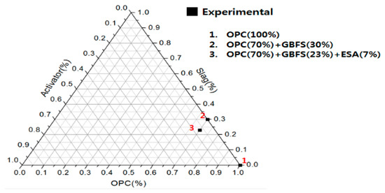 The basicity (b = (CaO + MgO + Al2O3)/SiO2) was 1.79 and fineness was 4330 cm2/g. In consideration of the economic feasibility, OGE (70% OPC + 23% GBFS + 7% ESA) without natural anhydrous gypsum was used for the experiment. Its chemical composition is demonstrated in Table 1.