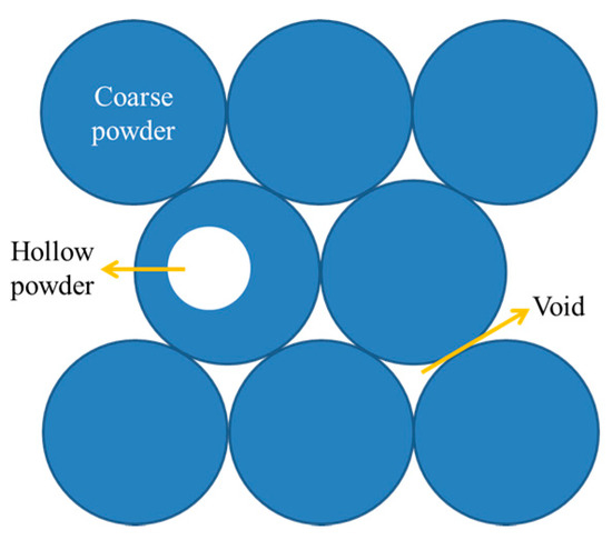 Schematic of coarse powder with hollows and voids.