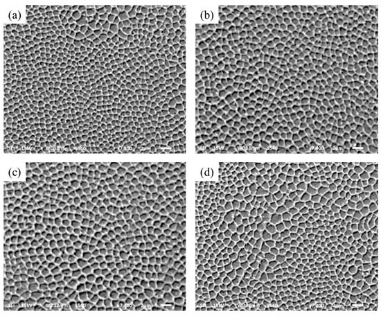 Microstructure of different exposure times (a) 80 μs; (b) 120 μs; (c) 160 μs; (d) 200 μs.