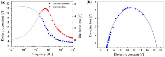 Dielectric properties of an MCC particle based ER fluid: (a) dielectric constant and loss factor vs. frequency; and (b) dielectric loss vs. dielectric constant (Cole–Cole plot) [93].