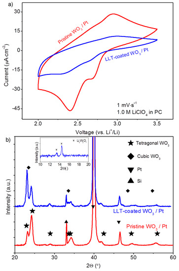 - Li, W.J.; Fu, Z.W. Nanostructured WO3 Thin Film as a New Anode Material for Lithium-Ion Batteries. Appl. Surf. Sci. 2010, 256, 2447–2452. [Google Scholar] [CrossRef]