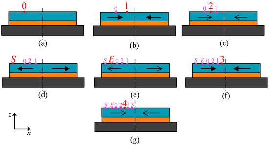 - Step 5—ending point of high temperature: During the thermal treatment process, the tension on the glass decreased due to stress relaxation, and P1 slightly moved in the positive x direction to result in a higher offset and sensitivity (Figure 10e).