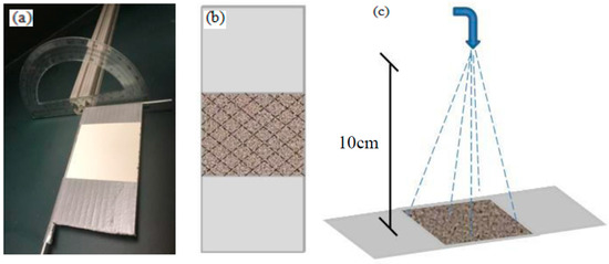 (a) Self-made slide angle measuring station; (b) knife-scratch and (c) water jet sketch.