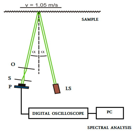 The method is sensitive to qualitative differences in technological methods for the final machining of the surfaces (machined standards), i.e., machining by planing and front grinding. A comparison of the obtained results with standard values of the parameters Ra and fmax (fmax is the characteristic frequency of a vertical surface irregularity) was performed. The agreement was very good. The value of the correlation degree r was from 0.83 to 1.00. Figure 2 shows the basic principle of the measurement, where: P is the photodetector, S is the slit, O is the lens, LS is the light source, α is the angle between the light beam and normal line to surface, and v is the speed.