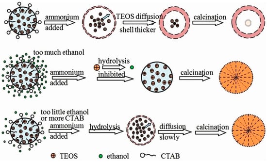 - Teng, Z.; Han, Y.; Li, J.; Yan, F.; Yang, W. Preparation of hollow mesoporous silica spheres by a sol-gel/emulsion approach. Microporous Mesoporous Mater. 2010, 127, 67–72. [Google Scholar] [CrossRef]