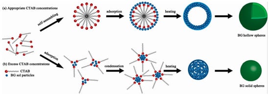 - Hu, Q.; Li, Y.; Zhao, N.; Ning, C.; Chen, X. Facile synthesis of hollow mesoporous bioactive glass sub-micron spheres with a tunable cavity size. Mater. Lett. 2014, 134, 130–133. [Google Scholar] [CrossRef]