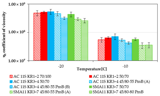 Burgers model η1 coefficient of viscosity of steady flow results for the temperatures of −20 °C and −10 °C.
