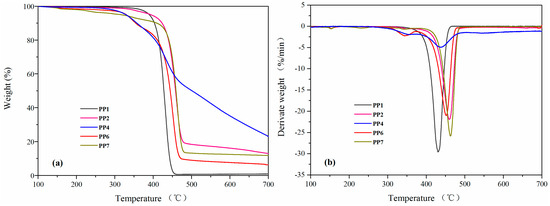 - Lai, X.; Qiu, J.; Li, H.; Zhou, R.; Xie, H.; Zeng, X. Thermal degradation and combustion behavior of novel intumescent flame retardant polypropylene with N-alkoxy hindered amine. J. Anal. Appl. Pyrolysis 2016, 120, 361–370. [Google Scholar] [CrossRef]