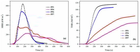 | Samples | TTI (s) | TPHRR (s) | PHRR (kW/m2) | THR (MJ/m2) | FPI (s·m2/kW) | Residue (wt %) |