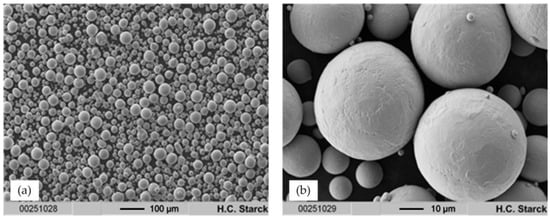 Ti-42Nb powders were obtained by means of electrode induction-melting gas atomization (EIGA) of pre-alloyed Ti-42Nb rods using Ar gas (4.6, Linde, Munich, Germany) for atomization. The raw powder was fractionized by sieving, and the fraction < 63 μm was used for further investigation and processing. Figure 1 indicates that the particles are highly spherical and that their surfaces are smooth without visible cracks or other faults. Accordingly, they possess ideal flow properties for application in SLM.