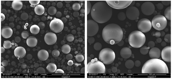 Scanning electron microscope (SEM) images of hollow glass microspheres.