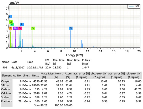 In addition to the dimensions of microsphere, another important issue is to determine the chemical composition of its solid wall. To do so, the energy spectrum of solid wall of HGM is measured in the same equipment FEI Quanta 250 FEG. Figure 4 indicates the wall of HGM is mainly composed of about 80% of SiO2 and 20% CaO.