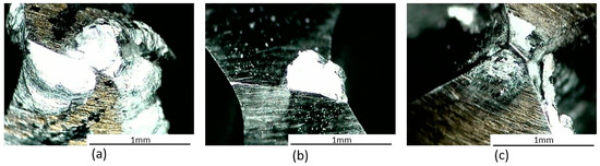Worn drills (a) HSS-Ti; (b) HSS-Mo; (c) HSS-Co.