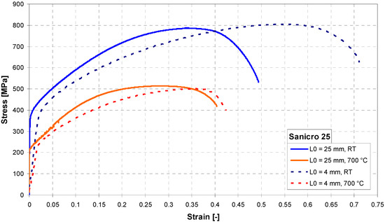 Figure 3. Tensile curves of Sanicro 25 steel.