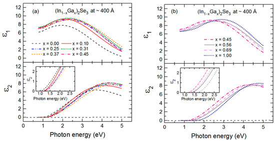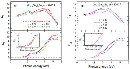3.1. Variation of IGS Complex Dielectric Function with Ga Composition (x)