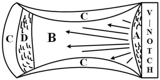 The screen zones of fracture surface after impact tests: fibrous zone (A), radial zone (B), shear lip zone (C) and second fibrous zone (D).