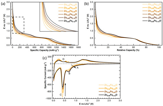 - Mueller, F.; Gutsche, A.; Nirschl, H.; Geiger, D.; Kaiser, U.; Bresser, D.; Passerini, S. Iron-Doped ZnO for Lithium-Ion Anodes: Impact of the Dopant Ratio and Carbon Coating Content. J. Electrochem. Soc. 2017, 164, A6123–A6130. [Google Scholar] [CrossRef]