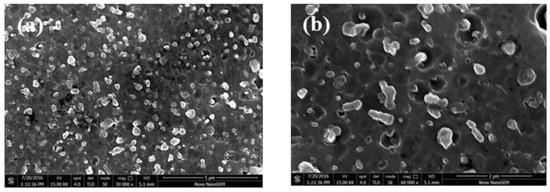 The SEM images of the samples perpendicular to the building direction of the SLM after T2 heat treatment are shown in Figure 10. After T2 heat treatment, Si particles are fine and granular, and no large flake Si exists. We observed carefully and found that Si is basically completely spherical and edges and corners disappear, which is very important for improving the plasticity of the materials. After becoming spheroid, the size of the Si particles decreases to nanometer scale, about 500 nm, and uniformly distributes in the Al matrix. The number of Si increases, and the volume is significantly small.
